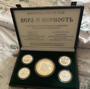 За результатами понад 30 санкціонованих обшуків, правоохоронці вилучили ювелірні вироби та прикраси, золоті пам’ятні монети, ікони, дорогоцінні годинники різних брендів та нагородні, мисливську та вогнепальну зброю, нагороди РФ із незаповненими посвідченнями від імені його родича, гроші тощо.