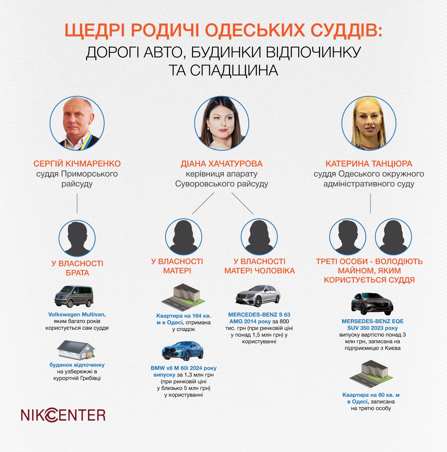 Квартири в елітних новобудовах за десятки мільйонів гривень, маєтки на морському узбережжі та люксові авто, записані на родичів та одеських бізнесменів. Все це за час повномасштабної війни зʼявилося у власності чи користуванні одеських суддів та навіть працівників місцевих судів, які, на відміну від перших, отримують скромні зарплати з бюджету. Nikcenter дослідив декларації служителів Феміди і виявив у них аномально занижені ціни на майно та звʼязки з одеськими підприємцями.