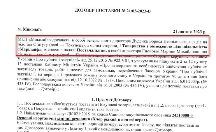 Nikcenter розповідав, що миколаївський водоканал двічі придбав рідкий хлор у цього постачальника за ціною 108 тисяч гривень за тонну. Ціна була щонайменше на чверть вища за аналогічні закупівлі інших водоканалів на той же час.