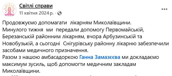 У 2023 році, згідно з YouControl, на Миколаївщині було зареєстровано ще одну Благодійну організацію – «Благодійний фонд «Фундація «Світлі справи». Керівником та засновником фундації є батько Ганни Замазєєвої, Володимир Ярмак.