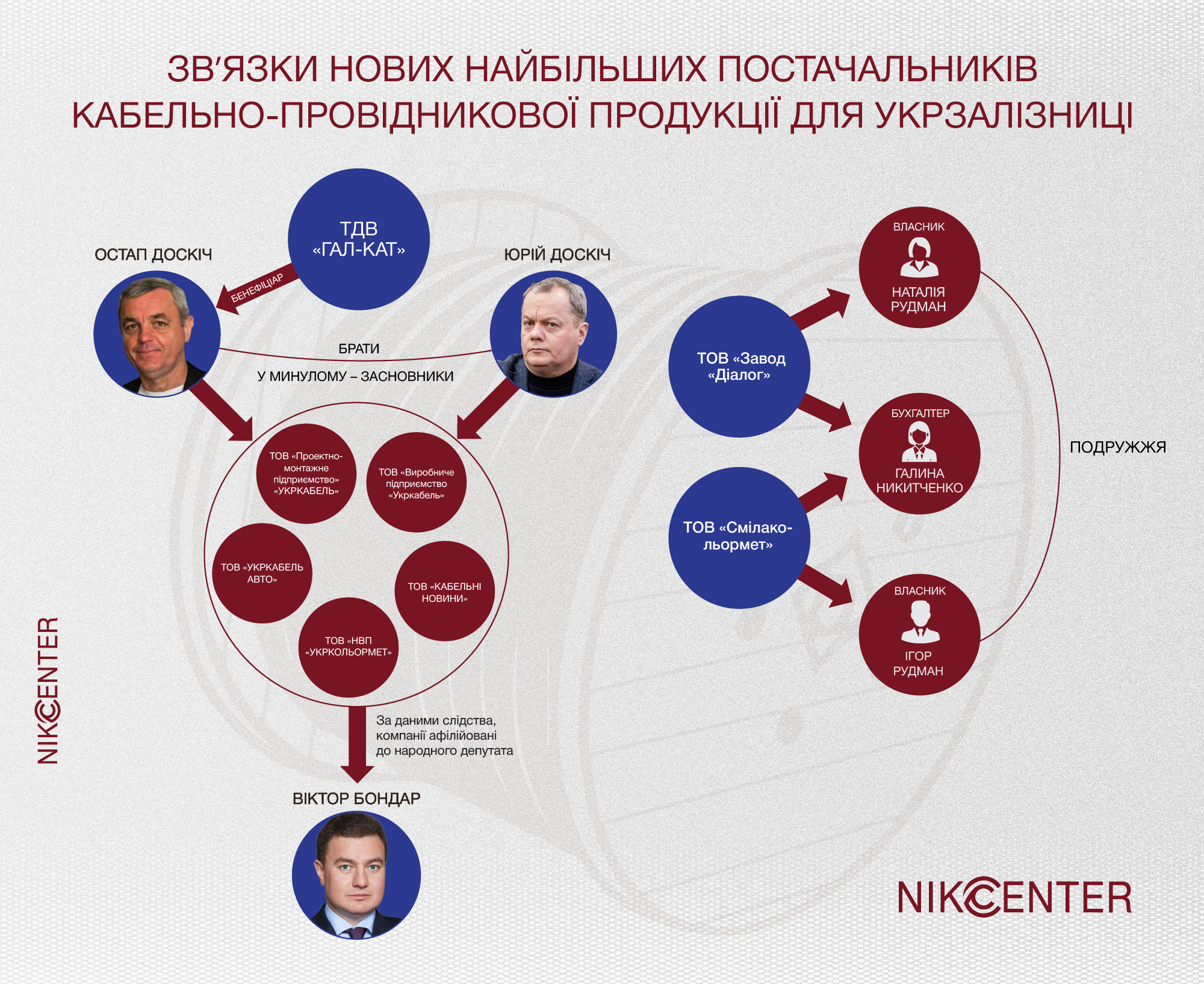 Кінцевими бенефіціарами усіх зазначених компаній згодом стали Галина Бондар – матір обвинуваченого нардепа – та ще двоє фігурантів справи про корупцію на закупівлях кабелів Укрзалізниці – гендиректор ТОВ «Виробниче підприємство «УКРКАБЕЛЬ» Володимир Довбенко та фінансовий директор підприємства Олег Мельник.