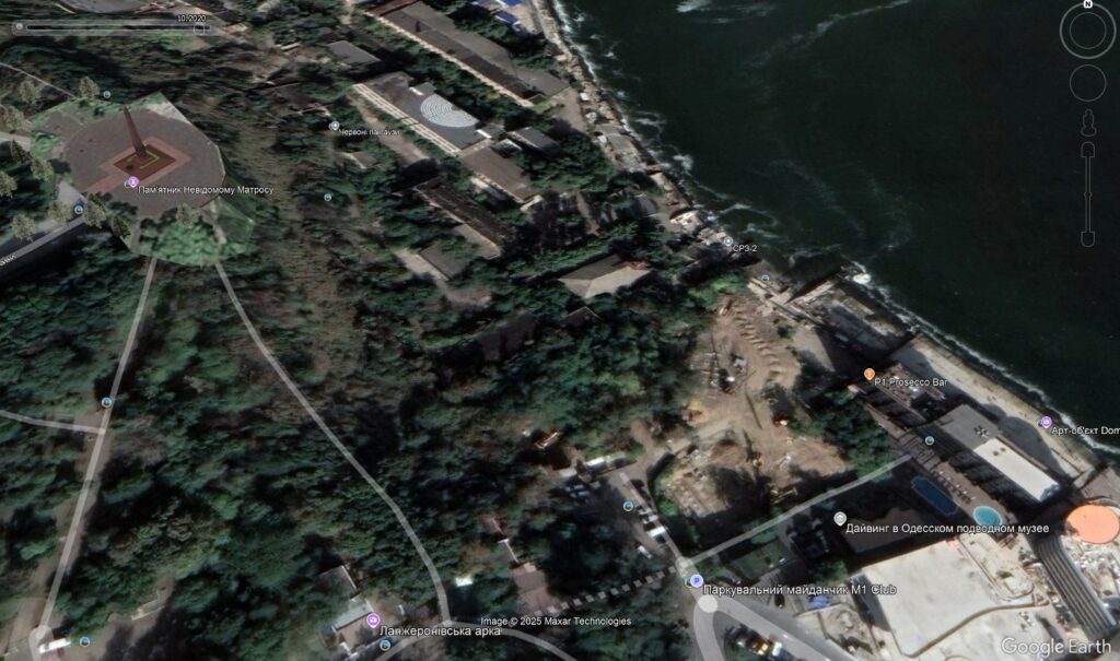 Чергова новобудова – залізобетонна конструкція, яка «виросла» на пляжі Ланжерон неподалік Чорного моря, перекрила вид з Алеї Слави, розташованої у центральному парку Одеси імені Шевченка. Тут будують черговий житловий комплекс. Причому забудовник вже відхилився від затвердженого проєкту на три поверхи, спотворивши зовнішній вигляд у центрі міста, фактично відібравши море.