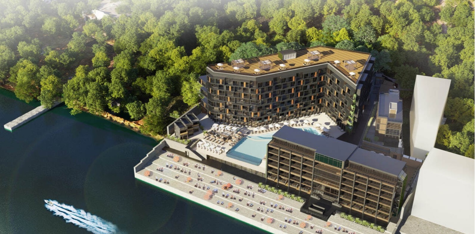 Але повернемось до землі, орендованої «СПС-Ріелт». У 2020 році, судячи з карти Google Earth, на Ланжероні розпочалось будівництво. Але будувати, незважаючи на дозвіл, вирішили не оздоровчий центр водних видів спорту, а апартаменти. Принаймні на сайті «Дім.ріа» вже з’явився профіль клубного будинку M1 Club Apartments. Хоча наразі продажі апартаментів у ньому призупинені до травня 2026-го через бойові дії. Судячи з візуалізації, проєкт досить масштабний, але проблемний.