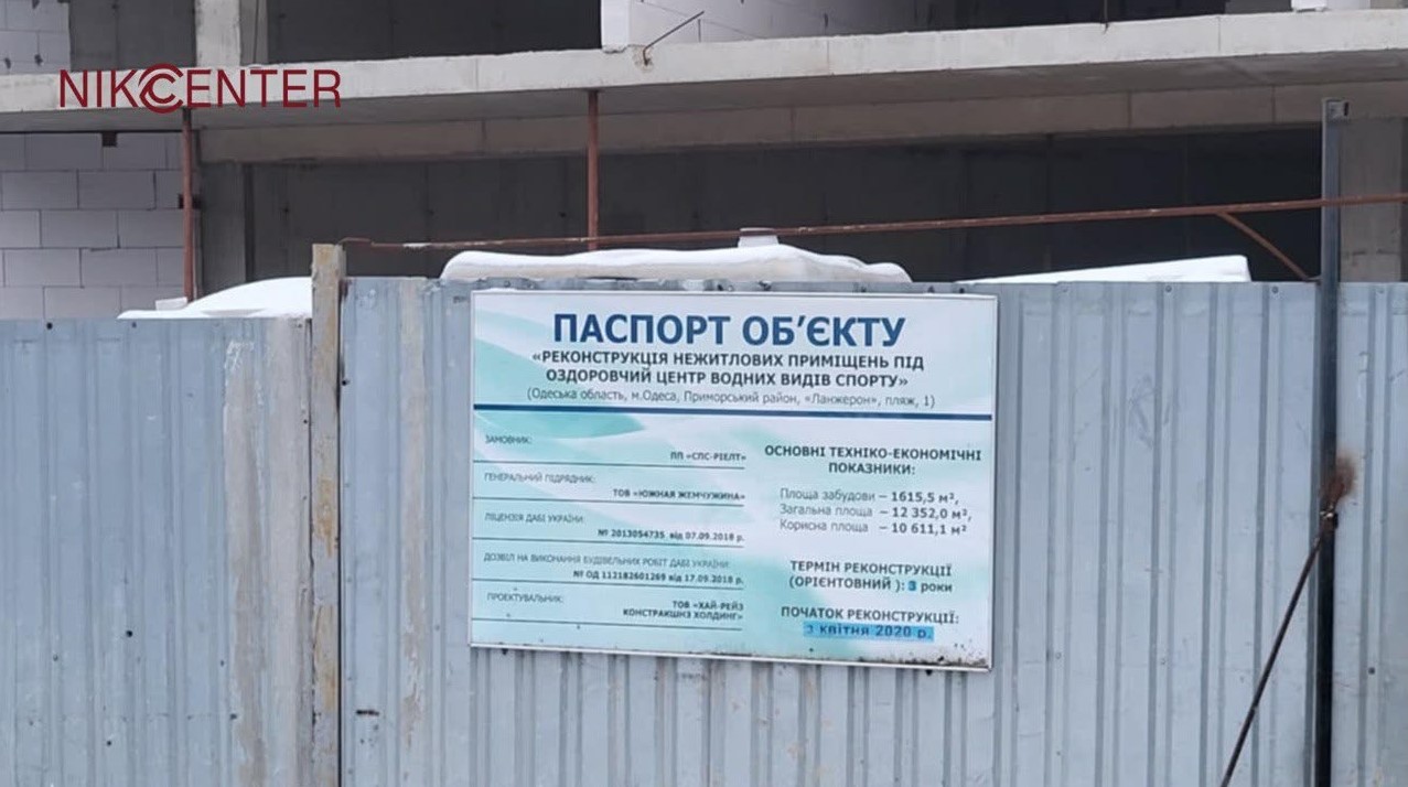 Після оформлення оренди землі у 2018 році компанія «СПС-Ріелт» отримала дозвіл на реконструкцію нежитлових приміщень під оздоровчий центр водних видів спорту на Ланжероні. Це мала бути будівля на вісім поверхів загальною площею трохи більше 12 тис. кв. м з автостоянкою на 17 місць. Підставою для надання дозволу стали містобудівні умови та обмеження, видані одеським департаментом архітектури, містобудування та земельних відносин у 2015 році. Однак ознайомитись з ними наразі неможливо, адже документи вилучені за ухвалою Печерського районного суду ще у 2020 році. В рамках якого розслідування – невідомо.