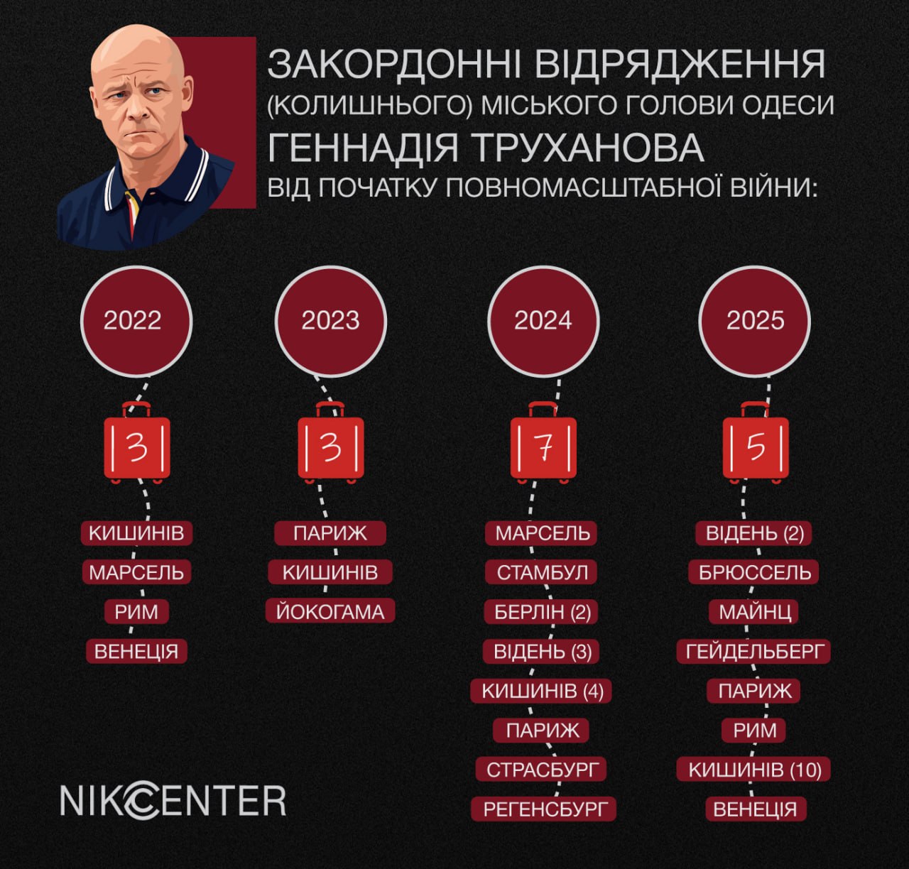 Сумарно Геннадій Труханов провів за кордоном 33 дні у 2024 році. У відповіді на запит зазначається, що його поїздки були безкоштовними для бюджету міста. Проте у розрахунковому листі оплата за роботу під час відряджень ексочільника міста вказана окремим рядком. За 2024 рік Геннадію Труханову нарахували 240 тисяч гривень таких виплат. За перше півріччя 2025 року ця сума склала 109 тисяч гривень.