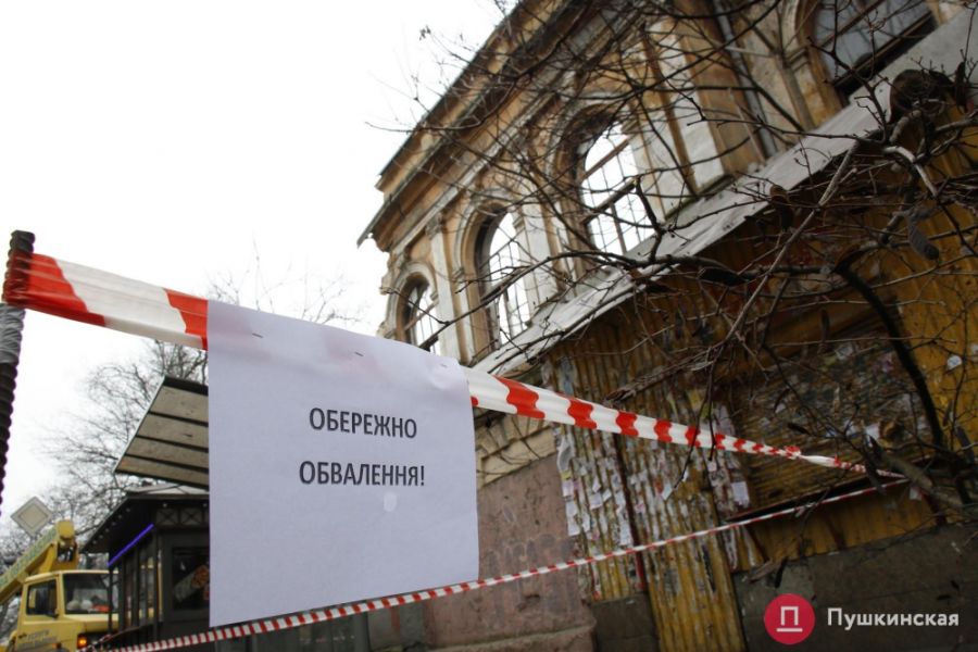 Если обойти вокруг здания, зажатого между Старопортофранковской, Торговой, Мечникова и сквером Регенсбург, становится понятно, что дальнейшие обрушения — вопрос времени. Состояние здания и даже заборов вокруг него удручающее: выбитые окна, в стенах дыры, кое-где крыши тоже уже нет.