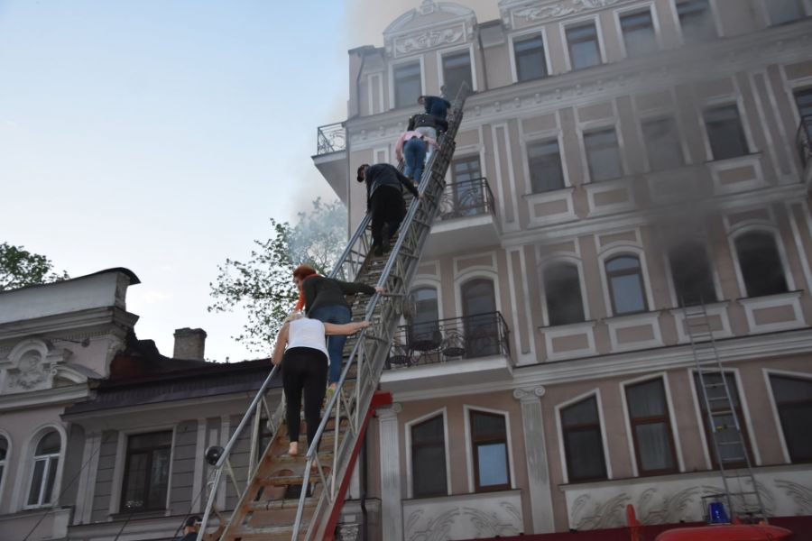 По прибытии на место менее чем за 10 минут, пожарные увидели, что ситуация изменилась. Подвальное помещение было уже очень сильно задымлено, а на первом этаже здания, в помещении ресторана "Щастье" открытым огнем бушевал пожар, вплотную к соседнему ресторану "Сальери". При этом на других этажах, с второго по пятый, пятиэтажного дома находится отель "Палас Ройял".