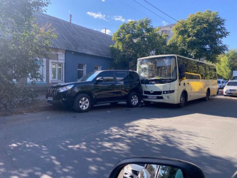 В Херсоне попал в ДТП один из автобусов, недавно приобретенных в лизинг. Автобус ATAMAN A092Н6 столкнулся с внедорожником.