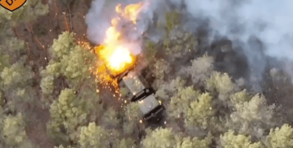 Українські військові за допомогою безпілотника виявили російську вантажівку, яка перевозила боєприпаси. Після прибуття "Ведмедя" на позицію військові навели артилерію. Керований снаряд M982 Excalibur знищив ворожий тягач. Від вибуху снаряди в машині почали детонувати.