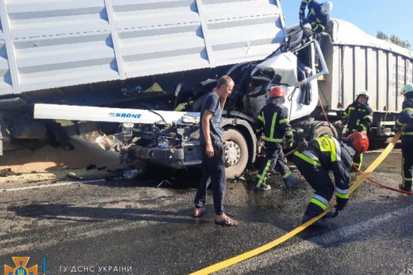 На Одещині зіткнулися три зерновоза: одного водія вирізали з кабіни