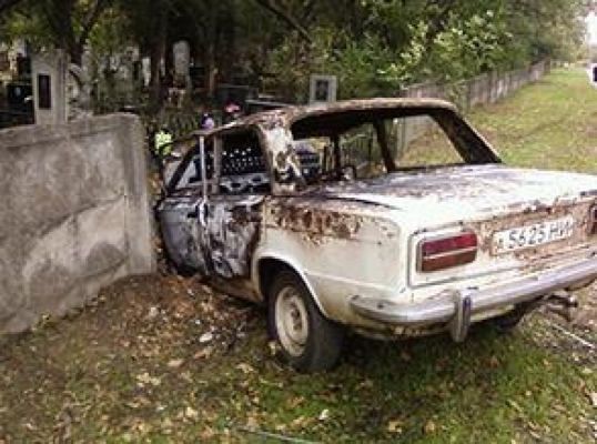 По прибытию на место происшествия спасатели немедленно начали тушить горящую машину. Автомобиль был врезан в забор кладбища, но в кабине никого не было.