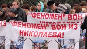 Сегодня, 14 ноября, в Николаеве предприниматели, зарабатывающие на "Позвонишках", пикетировали горисполком и прокуратуру, протестуя против нечестного передела их бизнес-поля. Они уверены, что зачистка города от "Позвонишек" — это не стремление сделать город чище и краше, а попытка отнять бизнес у николаевских предпринимателей и отдать его киевской фирме "Феномен".