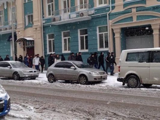"Мы только что отправились колонной с Майдана Независимости в направлении представительства ЕС в Украине. Мы попробуем разблокировать мирным путем центральный вход, который утром заблокировали "титушки", парализовав работу дипломатического учреждения", — отметил Белоцерковец.