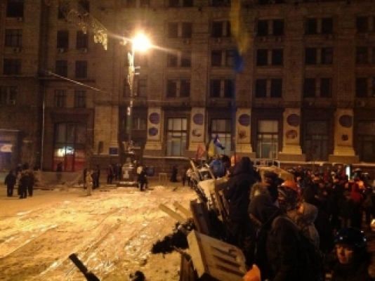 Митингующие начали разбирать чугунные конструкции на Майдане Незалежности и Крещатике для укрепления баррикад