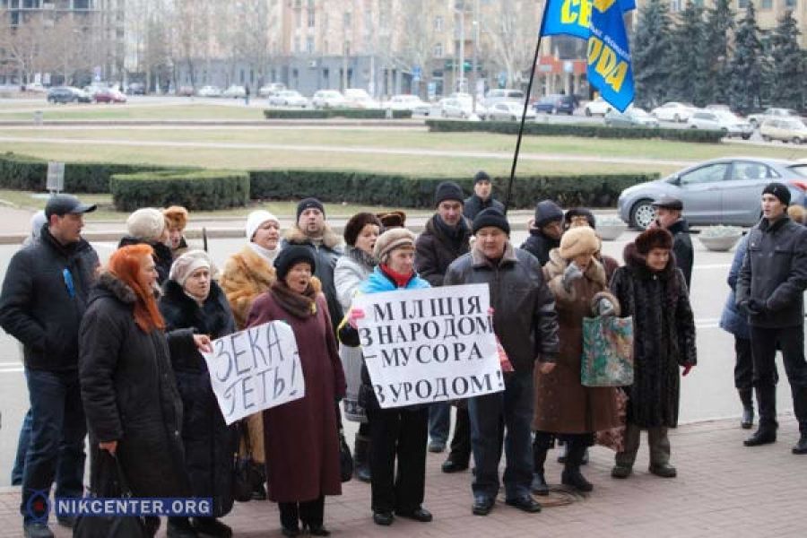 Наиболее массовым оказалась акция участников николаевского Евромайдана. Протестующие вышли под мэрию с плакатами «Зека геть!», «Годі з нас, виходь на майдан Миколаєва».