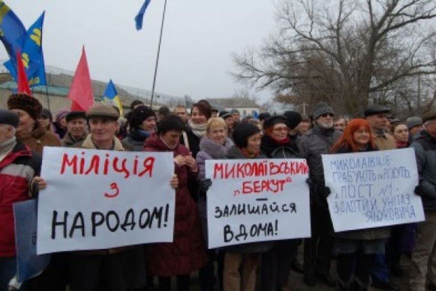 В Николаеве сторонники Евромайдана пикетировали базу местного «Беркута». На этот раз никто палкой по горбу, резиновой пулей в глаз и светошумовой гранатой в голову не получил