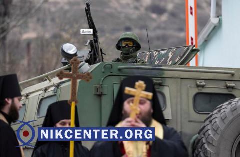 «После того, как я Вам позвонил взять благословение, мы поехали впятером в Балаклаву, остальные остались служить. Мы приехали в 16.15, сразу прошли между российскими военными и стали между ними и воротами нашей украинской части. Начали служить молебен о умиротворении враждующих.