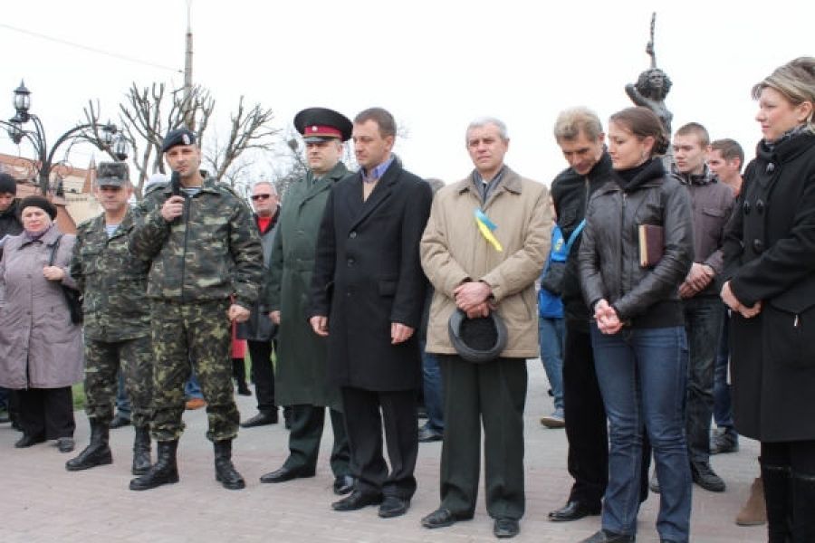 Народное собрание было не очень-то многолюдным: всего собралось сотня — может несколько больше — неравнодушных николаевцев, но представительным. Из известных персон на митинге присутствовали и выступали: секретарь Николаевского областного совета Тарас Кремень, начальник Николаевского гарнизона полковник Александр Иванов, командир батальона морской пехоты, располагавшегося в Феодоссии, подполковник Дмитрий Делятицкий, общественная активистка Евгения Матейчук.