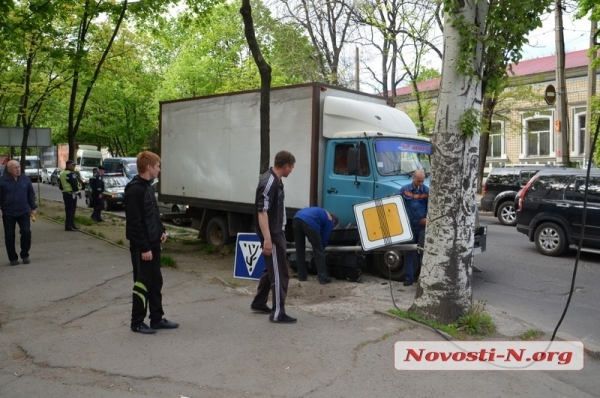 Днем в среду, 23 апреля, на ул. Большой Морской в Николаеве грузовик ЗИЛ врезался в светофор.