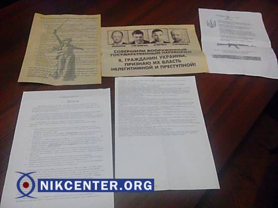 «В ходе следственных действий обнаружено и изъято компьютерную технику с перепиской сепаратистов по организации силовых акций в Николаеве, сметами расходов для финансирования местных групп так называемой «самообороны», эскизам открыток сепаратистского содержания. Изъято также готовые открытки, методические рекомендации по организации акций по дестабилизации ситуации в области и специфики управления толпой, списки граждан, которых злоумышленники планировали привлекать к силовым действиям, детальные карты наблюдения за расположенными на въездах в Николаев блокпостами, списки проукраинских активистов т.д.», — отметили в СБУ.