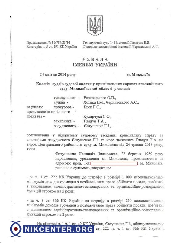 Тогда мы очень надеялись, что публикация сможет помочь суду Центрального района Николаева более внимательно, а главное принципиально отнестись к рассмотрению данного дела. Каково же было наше удивление, когда вместо того, чтобы определить и наказать виновных, Фемида в лице судьи Владимира Галагузы, наказала невиновных, более того, пострадавших от действий мошенников бизнесменов — Геннадия Евтушенко и Александра Лалыма.