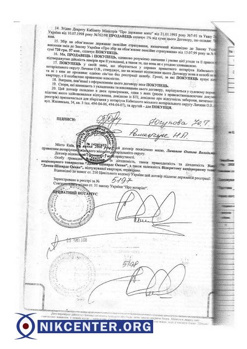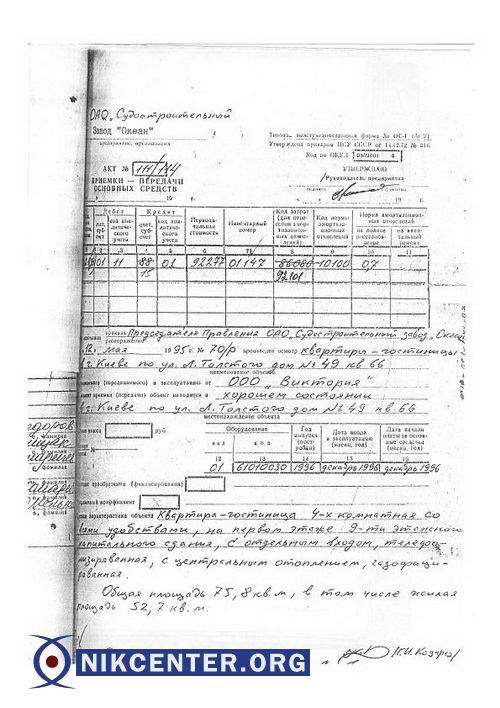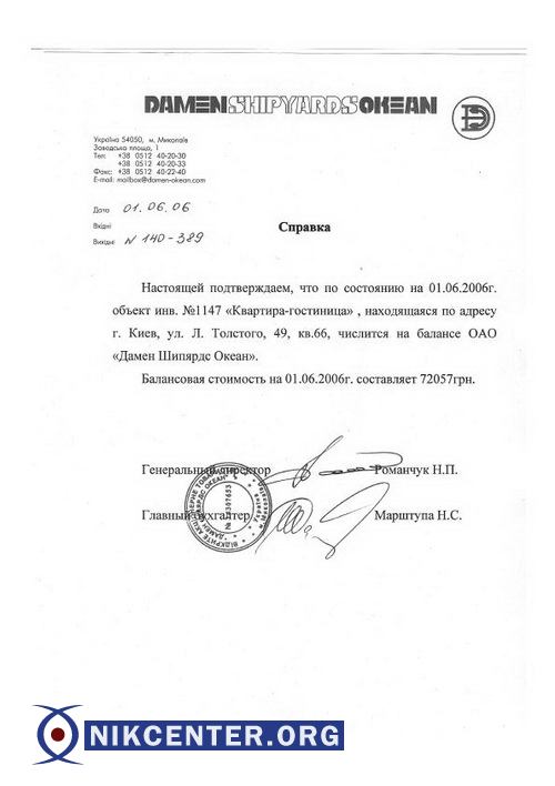 Характерным примером "эффективного" менеджмента Романчука на посту гендиректора "Океана" стала также продажа принадлежащей некогда заводу квартиры, расположенной практически в самом в центре Киева. Речь идет о 4-х комнатной "квартире-гостинице" по ул. Льва Толстого, 49, которая использовалась заводом для проживания командированных в столицу менеджеров. В 2006 году Романчук, как директор, дал согласие на продажу этой квартиры директору по персоналу завода Юлии Юсуповой. Квартира общей площадью 75 кв. м. была реализована заводом по балансовой стоимости 72 тыс. грн., т.е. по цене (исходя из действующего на тот момент курса) чуть более чем 200 долл. за кв. м. Нужно отметить, что в 2006 году средняя стоимость "вторички" на столичном рынке составляла порядка 1,6 тыс. долл. за кв.м., а цена на недвижимость в центре в разы превышала этот усредненный показатель (3-4 тыс. долл за кв.м). По скромным подсчетам только на этой "сделке" завод потерял почти 300 тыс. долл. Чем была продиктована такая щедрость управленца — остается загадкой. Хотя сам факт того, что постоянной спутницей Романчука в столичных "командировках" являлась все тот же директор по персоналу Юсупова, пожалуй, многое объясняет. Кстати, Юлия Юсупова стоит сегодня второй в очереди на погашение задолженности по зарплате в рамках дела о банкротстве. Хотя стоит признать, что ее требования поскромнее — 1,6 млн грн. Забавен еще и тот факт, что как Романчук, так и Юсупова в своих исковых заявлениях о взыскании задолженности по зарплате с "Океана" по странному стечению обстоятельств в качестве места прописки указывают один и тот же адрес — все ту же квартиру №66 в доме по ул. Льва Толстого, 49.