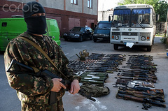 «Самый смертоносный рейд за последние несколько недель боев в Восточной Украине. В Горловке группа повстанцев взяла на себя ответственность за нападение и предоставила на всеобщее обозрение целый арсенал оружия, которое, как они утверждают, они захватили», — пишет автор фотографий.