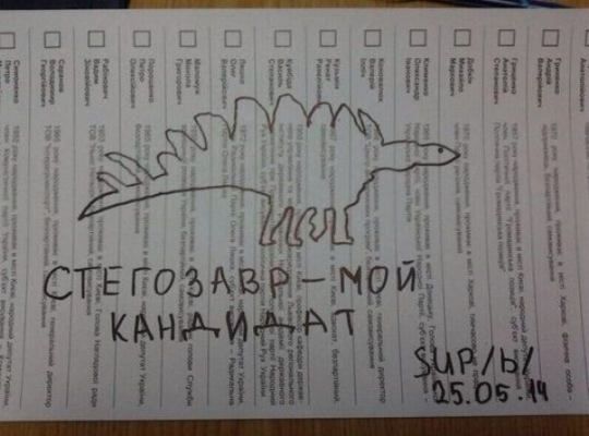 Фото испорченных бюллетеней: украинцы «голосовали» за Стегозавра и Путина