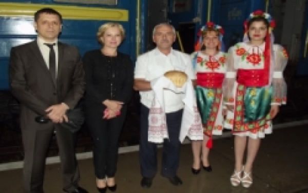 В теплой и дружеской обстановке гостям из западной Украины вручили хлеб-соль, звучали украинские песни и искренние слова поздравления. Первым поездом прибыло около ста пассажиров из западной Украины.