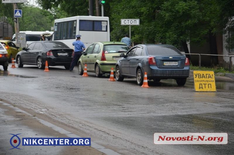 Днем во вторник на пересечении Херсонского шоссе и ул. Строителей в Николаеве столкнулись автомобили Subaru Legacy, Citroen C3 и Chevrolet Lacetti, сообщают Новости N.