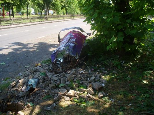 Тралик вылетел на обочину(на газон) и завалил столб.А не столб упал на него!!!
