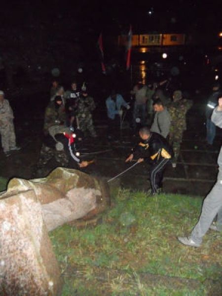 Стоит отметить, в Каланчаке памятник уже вернули на прежнее место. Хотя перед этим его подвергали даже огню. Также и в Чаплынке местные коммунисты возвратили памятник на постамент, но там скульптура лишена головы.