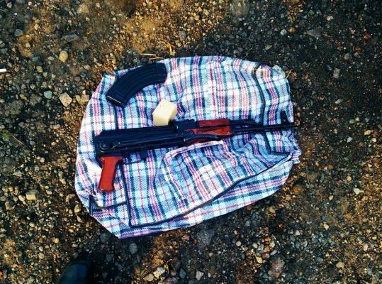 Когда один из пассажиров открыл сумку стало понятно чем вызвана такое поведение. В сумке находилась автоматическое оружие АКМС-74У, 1963 года выпуска, калибра 7.62 и 40 патронов к нему, а также устройство для отстрела резиновых пуль травматического действия ПМ-РФ, 1979 года выпуска калибра 9 мм. Конечно же на оружие разрешительные документы отсутствовали.