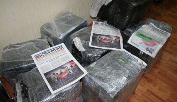 17 июня с.г. в Харькове в помещении одной из служб грузоперевозок сотрудники СБУ задержали местного жителя во время получения посылки. Груз весом 220 кг состоял из почти 10 тысяч экземпляров печатного издания под названием "Новороссия". В дальнейшем злоумышленник должен был распространить их на территории Харьковщины.