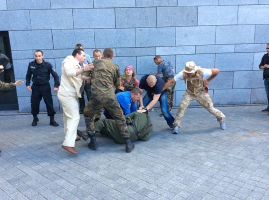Между активистами четвертой казацкой сотни Майдана и спецподразделением милиции "Грифон" утром 20 июня произошли столкновения возле помещения, где должен проходить внеочередной 12-й Съезд судей Украины на улице Большой Васильковской, 55 в Киеве, сообщает РБК-Украина.
