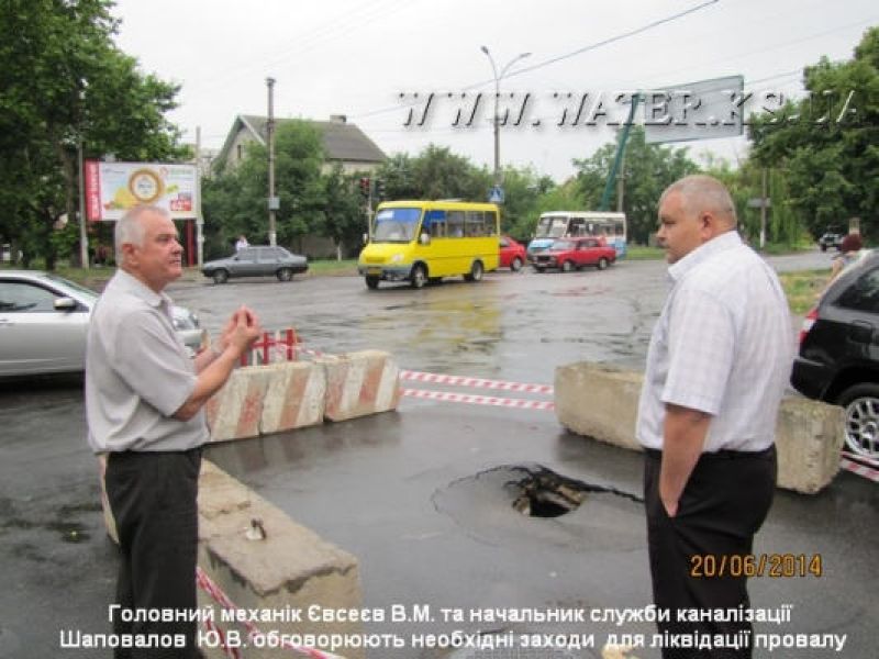 В густонаселённом микрорайоне Херсона провалилась дорога. На углу улиц Черноморской и 40 лет Октября произошел провал асфальтового покрытия. На место выехала дежурная бригада аварийно-восстановительных работ, были оповещены и другие службы. Выяснилось, что на углу указанных улиц вследствие газовой коррозии произошло обрушение железобетонной плиты Горводоканала. Её устанавливали более 40 лет назад. Под плитой, на глубине 2,5 м, проходит напорный коллектор и самотечный коллектор диаметром, санацию которого выполнили зимой 2013-2014 году за счет государственного бюджета.