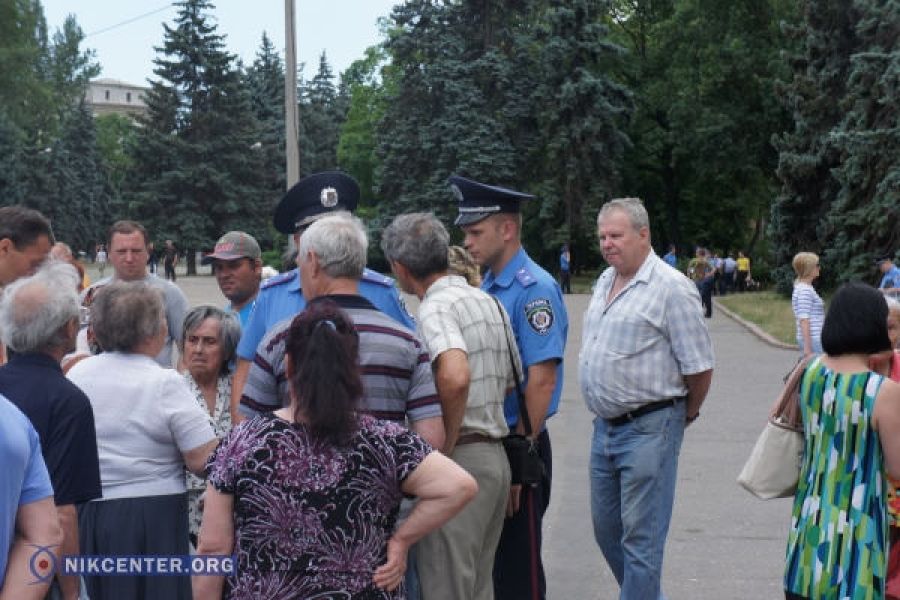 Большинство активистов пришли с цветами – от Куликового поля планировалось шествие в Парк Шевченко и возложение цветов у памятника Неизвестному матросу. Но поскольку суд этого не разрешил, активисты решили обойти запрет: пойти к памятнику не как антимайдановцы, а как простые одесситы. Идти решили небольшими группами, чтобы это не считалось шествием. Хотя передвигаться маленькими компаниями получилось только до первого светофора на перекрестке. Перейдя дорогу, активисты все равно пошли одной колонной. Их сопровождала милиция, что не очень нравилось шествующим: