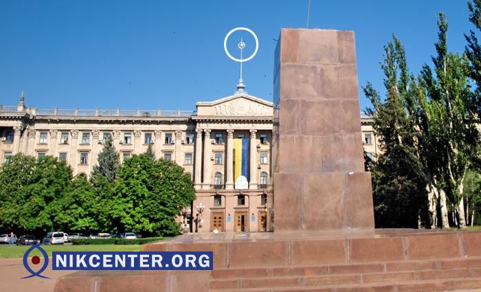 В. Ленина с площади убрали, но советская звезда на шпиле горсовета осталась.