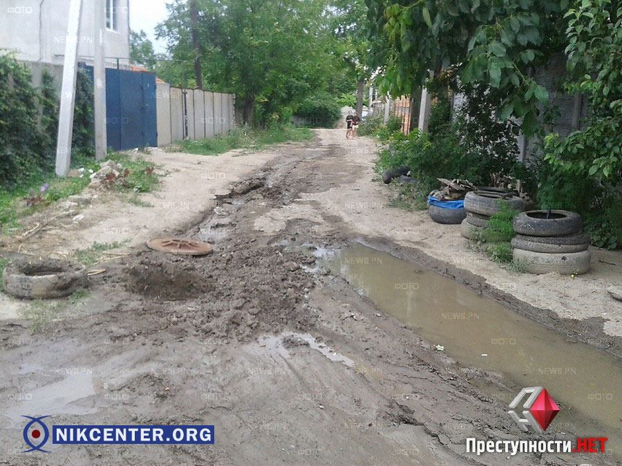 Отметим, что после аварии и «работы» (а скорее бездействия) коммунальщиков, дорога в переулке превратилась в сплошную яму и болото.