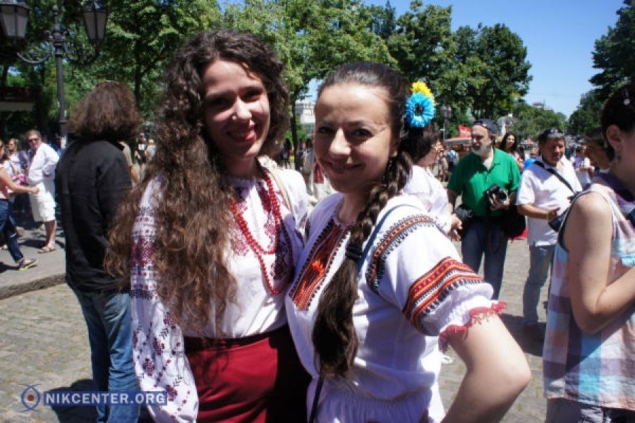 Одесситы и гости города прошлись в украинской национальной одежде от главной городской улицы Дерибасовской до Потемкинской лестницы.