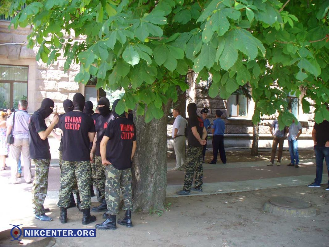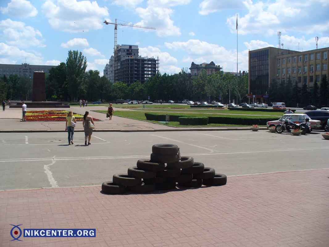 Тем временем, возле здания горсовета "Правый сектор" сложил автомобильные покрышки…