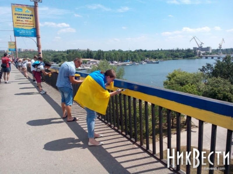 Сегодня, 13 июля, в центре Николаеве прошла ещё одна акция по покраске моста в национальные цвета, передает корреспондент НикВестей.