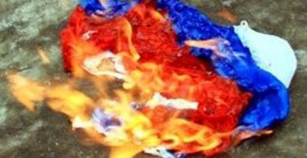 После этого российская символика была брошена на землю. Часть людей потоптались по нему и хотели сжечь. Однако их убедили дождаться следственно-оперативную группу, после приезда которого флаг разорвали пополам. Одну часть полотна отдали правоохранителями, вторую часть публично сожгли.