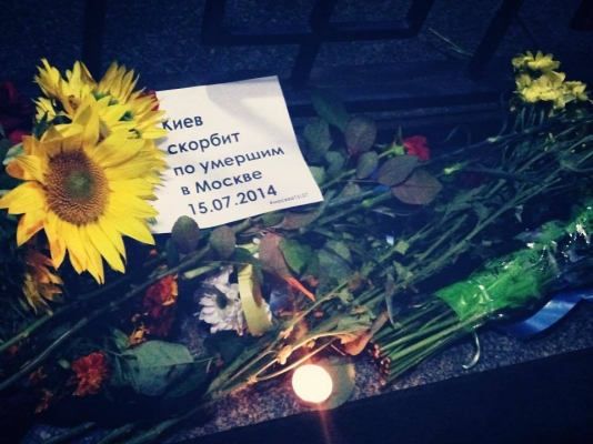 Так, 15 июля, киевляне принесли к посольству РФ в Украине цветы со словами сочувствия жертвам трагедии в московском метро.