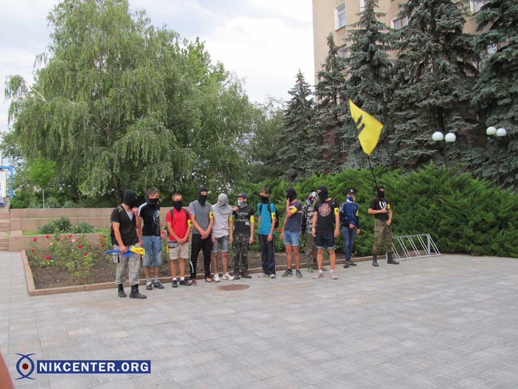 Активисты города Николаева и представители организации УНА-УНСО (Украинская Национальная Ассамблея — Украинская Народная Самооборона) вечером 17 июля вышли на акцию протеста возле здания Николаевской облгосадминистрации.