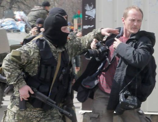 В докладе приводятся примеры, как в Донецке украинский независимый журналист был похищен вооруженными группами, затем после жестокого обращения его отпустили.