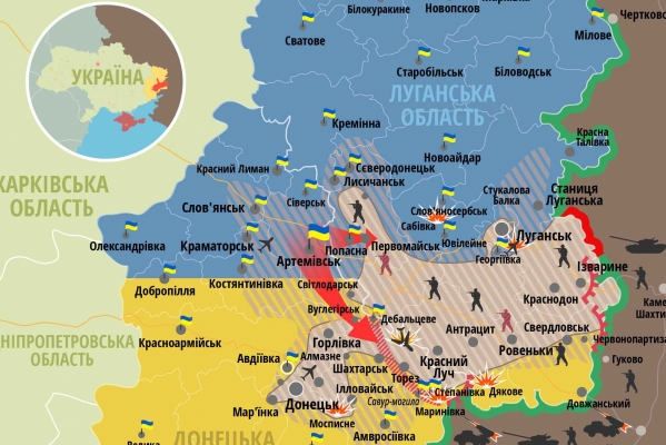 Карта боевых действий в зоне АТО по состоянию на 31 июля