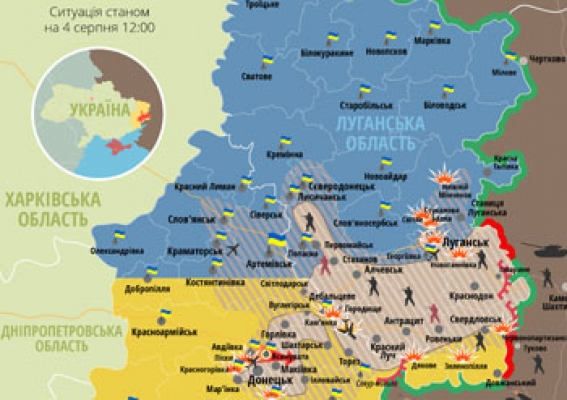 Карта боевых действий в зоне АТО по состоянию на 4 августа