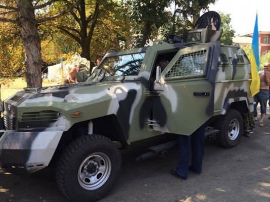 В свою очередь нардеп Александр Брегинец написал, что в Нацгвардию поступила одна машина, на которой сегодня установят оружие и "завтра уже отправится в бой". Бронемашины КрАЗ «Кугуар» произведенные Кременчугским автозаводом на базе внедорожника Toyota Land Cruiser.