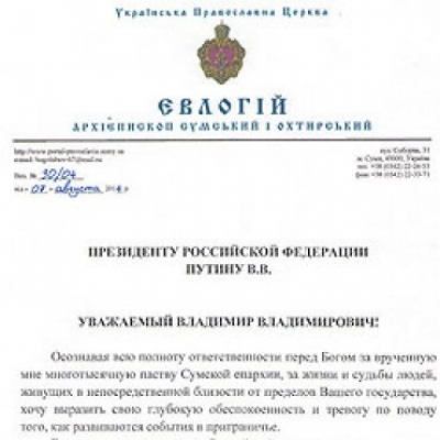 Архиепископ Сумской и Охтырский УПЦ (МП) Евлогий (Гутченко) обратился к Президенту России Путину с призывом остановить наращивание российского военного потенциала на границе с Украиной и сделать все возможное, чтобы на Сумщине не пролилась кровь.
